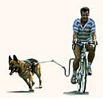 Radfahrer und Hunde